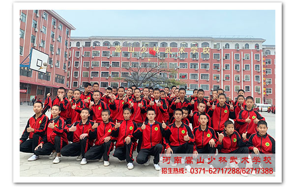 河南登封嵩山少林武术学校,原嵩山少林武术学院始于1981年,是建国后最早的专业性文武学校。既是省政府最认可、人民最满意、市政府批准、集文武教学于一体的现代化全封闭式教学教育机构。学校坐落于风景秀丽的嵩山脚下,禅宗祖庭、少林武术的发源地——功夫之都登封。嵩山少林武术学校,是一所具有国家标准、以少林功夫为特色,集武术、影视、体育、艺术、传统文化、现代科技为一体的新型综合文武学校,是国内外有志之士学习、研究、交流和发展少林禅武文化的窗口,也是负责对外表演、教学、访问、弘扬少林文化、培育少林后继人才的专业文武学校。